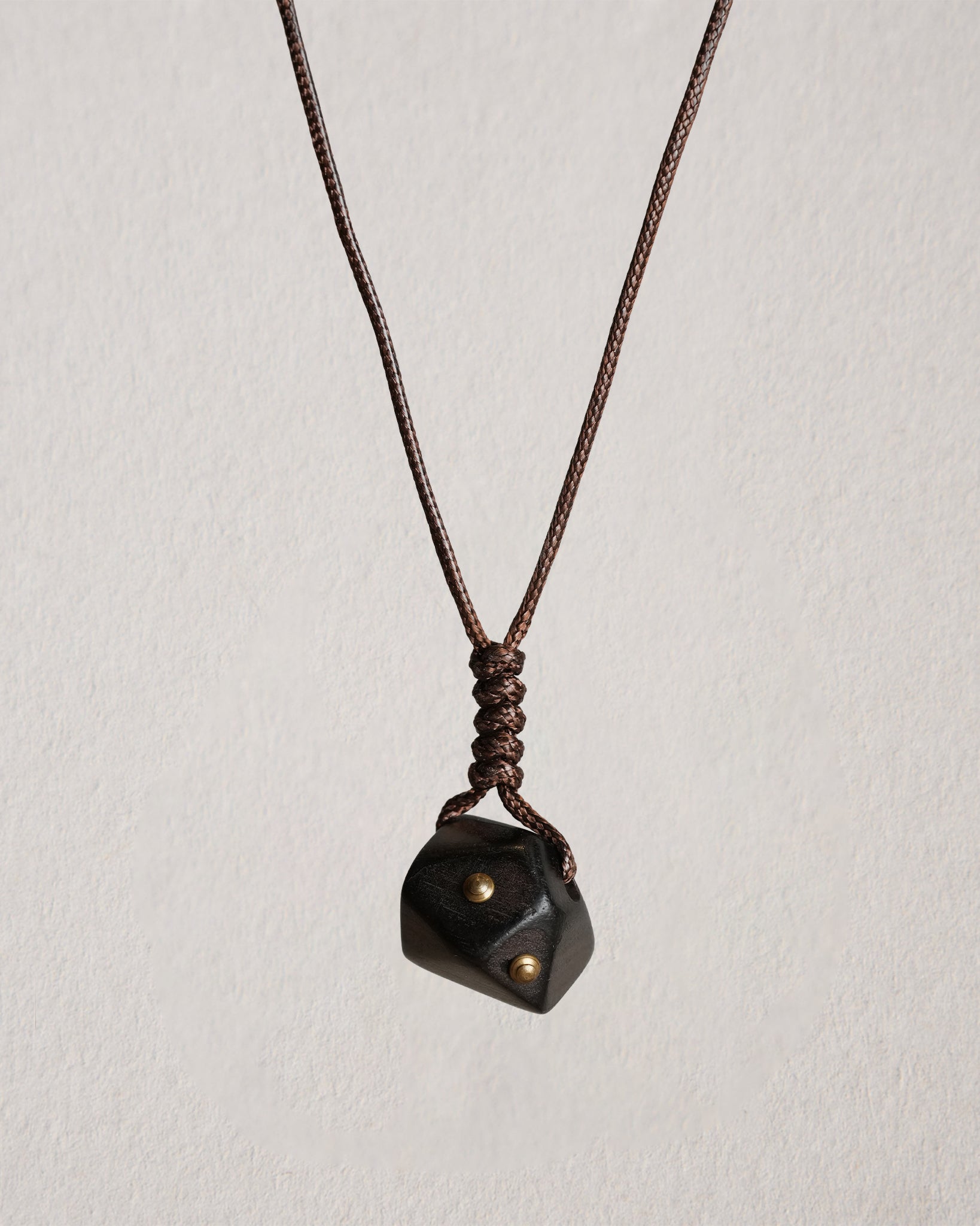 minimalist geometric pendant necklace, made of ebony wood and brass.